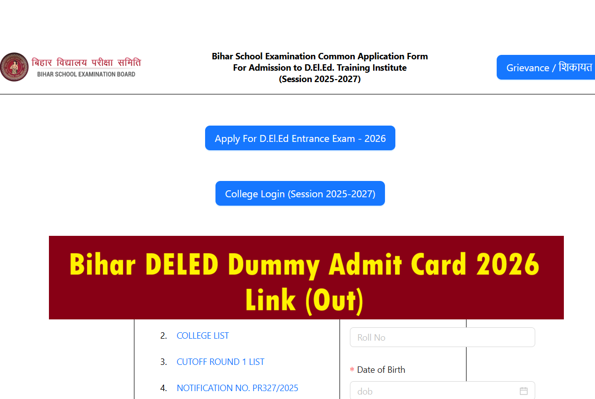 Candidates who have successfully submitted the online application form can now download their Bihar DELED Dummy Hall Ticket 2026 from the official website www.bsebdeled.com by logging in using their User ID and Password.