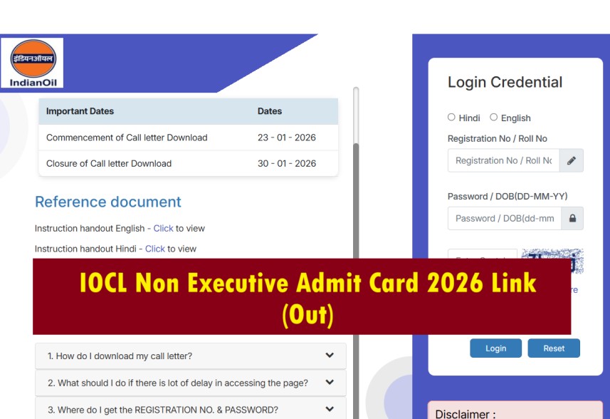 The IOCL Non Executive Admit Card 2026 has been officially released by Indian Oil Corporation Limited (IOCL) on 24 January 2026. Candidates who are going to appear for the IOCL Non-Executive Online Examination scheduled on 30 January 2026 can now download their hall ticket from the official website iocl.com. Applicants are advised to download the … Read more
