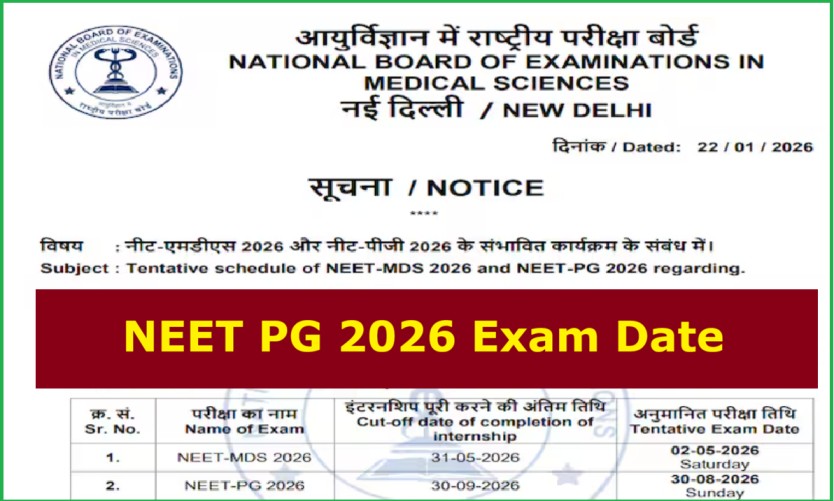 The NEET PG 2026 Exam Date has been officially announced, giving medical graduates a clear timeline for their postgraduate entrance preparation. As per the latest update, the NEET-PG 2026 examination is tentatively scheduled to be held on Sunday, 30 August 2026. The exam will be conducted by the National Board of Examinations in Medical Sciences … Read more