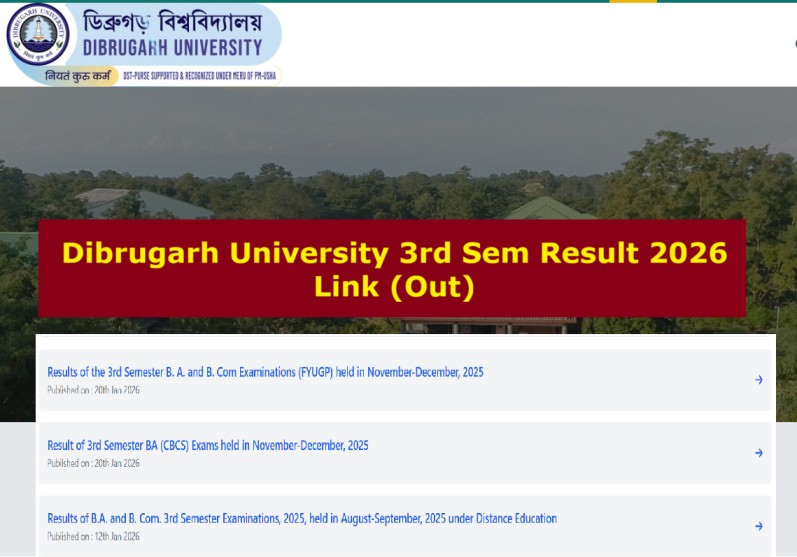 - Dibrugarh University 3rd Sem Result 2026 Link – https://www.dibru.ac.in/categories/results