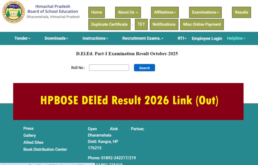- D.El.Ed. Part-I Examination Result October-2025– https://www.hpbose.org/Result/Result_DElEd_I_October_Yr_2025.aspx