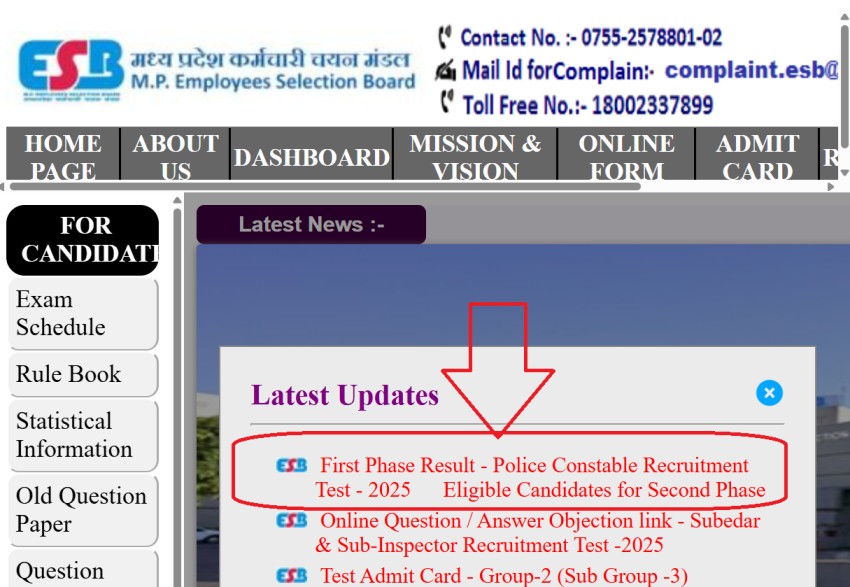 Sarkari Result Live Update- MP Police First Phase Result 2025 has been declared by MP ESB on 25.02.2026 at its official website. Enter Application No. and Date of Birth to check marks and Score Card.